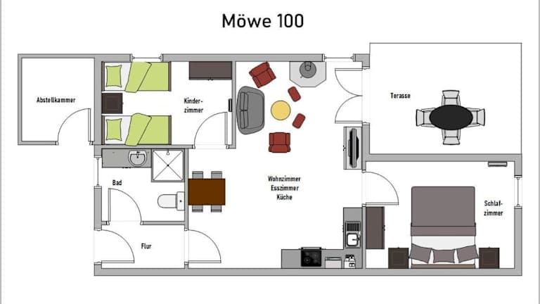 Das Ferienhaus Möwe 100 bietet eine ruhige und komfortable Unterkunft. Es ist mit kostenlosem WLAN ausgestattet und verfügt über eine Terrasse sowie einen Garten, der zur Entspannung einlädt. Für die Sicherheit der Gäste sind Rauchmelder und Feuerlöscher vorhanden. Die Anlage ist rauchfrei und bietet Nichtraucherzimmer.