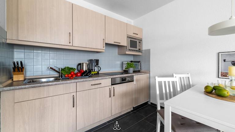 Die Ferienwohnung besteht aus einem Schlafzimmer, einem Wohnzimmer sowie einer voll ausgestatteten Küche, die über einen Kühlschrank und einen Wasserkocher verfügt. Das Badezimmer ist mit einer Dusche und einem Haartrockner ausgestattet. Ein TV ist ebenfalls vorhanden. Die Unterkunft bietet Platz für Gäste und ist für Nichtraucher ausgelegt.