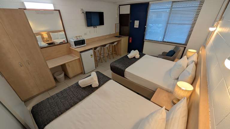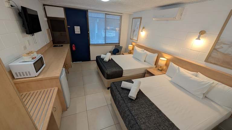 Das Moffat Beach Motel bietet klimatisierte Zimmer mit eigenem Balkon und kostenfreiem WLAN. Zu den Annehmlichkeiten zählen ein Außenpool, eine sonnige Terrasse sowie ein Grillplatz mit Sitzgelegenheiten im Freien. Die Unterkunft verfügt über eine 24-Stunden-Rezeption und bietet kostenfreie überdachte Parkmöglichkeiten. Gäste können zudem am Tourenschalter Tagesausflüge planen.