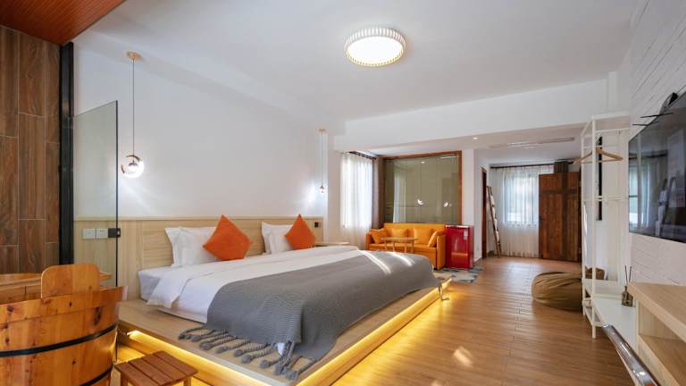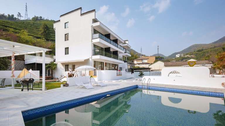 Das Moganshan Jiang Garden in Deqing ist eine charmante Privatunterkunft, die mit ihrem Restaurant, der Bar und kostenfreiem WLAN in der gesamten Unterkunft überzeugt. Genießen Sie den saisonalen Außenpool und den Grillbereich. Die Zimmer sind gemütlich eingerichtet und einige bieten einen herrlichen Blick auf die Berge oder den Pool. Die Unterkunft bietet zudem eine 24-Stunden-Rezeption und Fahrradverleih. Entdecken Sie die malerische Gegend von Moganshan Dakeng und erkunden Sie die Umgebung beim Radfahren und Wandern.
