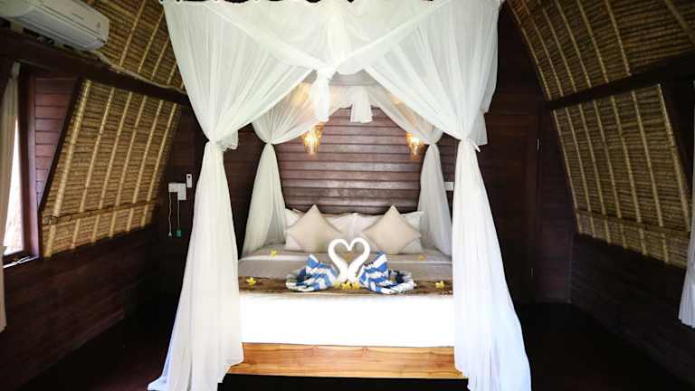 Das MolaMola House am Strand Mushroom Bay auf der Insel Nusa Lembongan ist eine hervorragende Wahl für Reisende, die nach einer entspannten und erholsamen Unterkunft suchen. Mit kostenfreiem WLAN und der Möglichkeit, Schnorchel- und Kanuzubehör zu nutzen, bietet das Hotel alles, was man für einen unvergesslichen Aufenthalt benötigt. Die Zimmer sind klimatisiert und mit Moskitonetzen ausgestattet und bieten einen atemberaubenden Blick auf den Garten oder das Meer. Der hauseigene Coffee Shop serviert eine Vielzahl von Gerichten und Getränken, darunter Bio-Kaffee, frische Säfte und Cocktails.