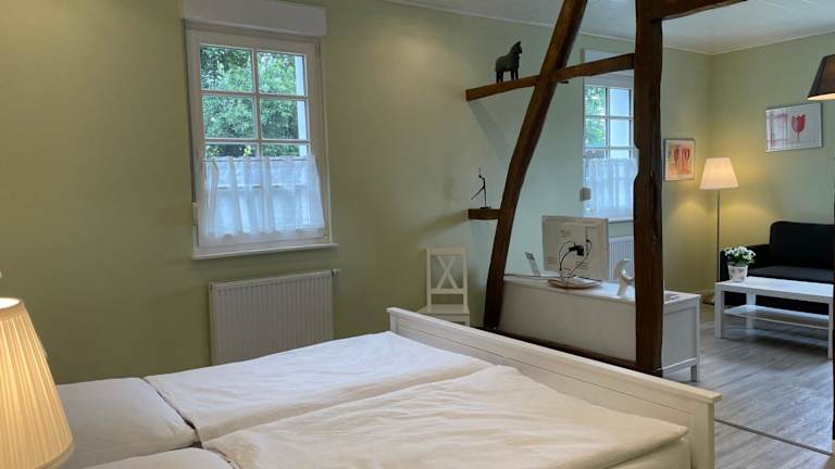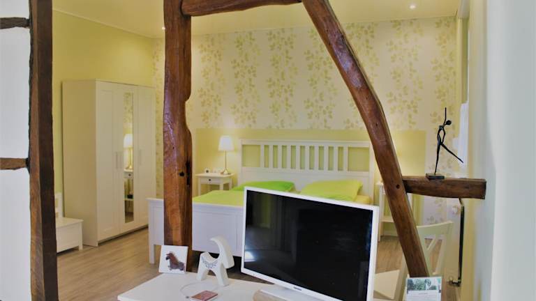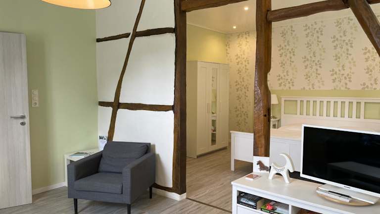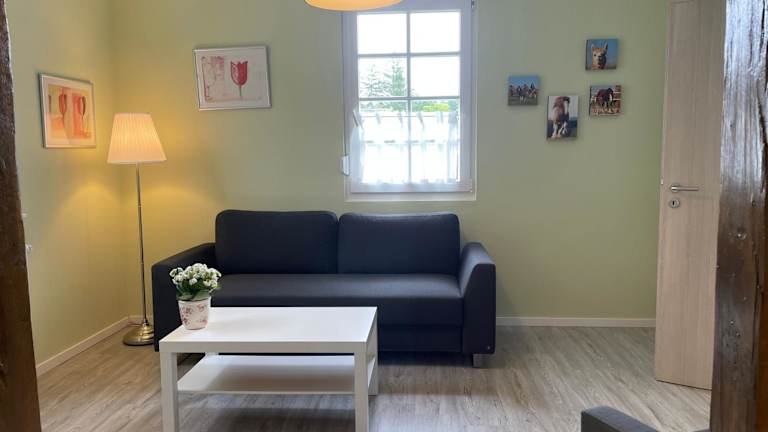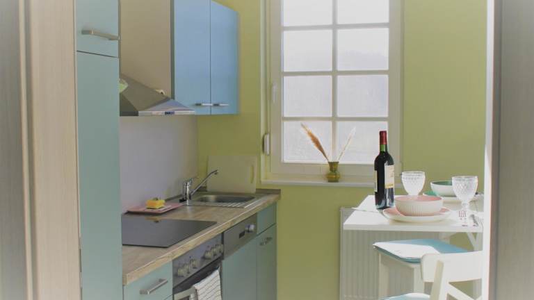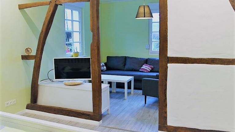 Die Ferienwohnung verfügt über ein Schlafzimmer, ein Wohnzimmer und ein Badezimmer mit Dusche. Zur Ausstattung gehören ein Flachbild-TV, eine gut ausgestattete Küche mit Kühlschrank und Geschirrspüler sowie Handtücher und Bettwäsche.