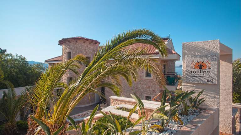 Das Molino Hotel in Kaş bietet komfortable Unterkünfte in günstiger Lage auf der Kas Peninsula. Mit einer Vielzahl von Annehmlichkeiten wie einem Restaurant, einer Bar, einer Sauna und kostenfreiem WLAN bietet das Hotel den Gästen einen angenehmen Aufenthalt. Die Zimmer sind modern eingerichtet und verfügen über Annehmlichkeiten wie Klimaanlage, Flachbild-TV und eigenes Bad. Einige Zimmer sind mit einer voll ausgestatteten Küche ausgestattet. Das Hotel bietet auch ein kontinentales Frühstück. Die Sehenswürdigkeiten der Region, darunter der Lykische Felsenfriedhof und die versunkene Stadt Kekova, sind leicht erreichbar.