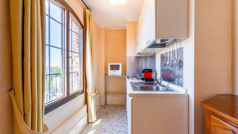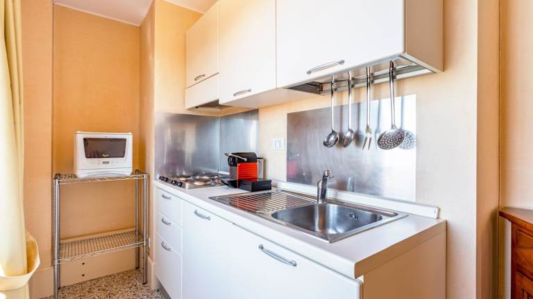 Die Ferienwohnung besteht aus einem Schlafzimmer, einem Wohnzimmer und einer voll ausgestatteten Küche, die über einen Kühlschrank und eine Kaffeemaschine verfügt. Es gibt ein Badezimmer mit Bidet und Dusche. Handtücher und Bettwäsche werden bereitgestellt.