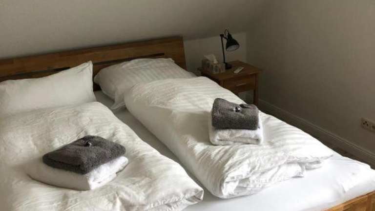 Die Ferienwohnung besteht aus 2 Schlafzimmern, einem Wohnzimmer und einer voll ausgestatteten Küche mit Kühlschrank und Kaffeemaschine. Das Badezimmer ist mit einer Dusche und einem Haartrockner ausgestattet. Handtücher und Bettwäsche werden bereitgestellt.