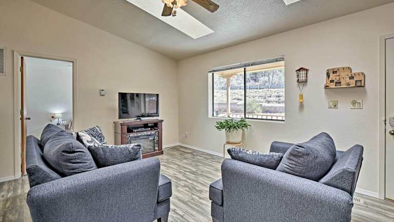 Das Moms Place in Jemez Cozy Home bietet 3 gemütliche Schlafzimmer und 2 Badezimmer. Die Zimmer sind mit komfortablen Betten und hochwertiger Bettwäsche ausgestattet. Das Ferienhaus verfügt über einen geräumigen Wohnbereich mit einem Flachbild-Kabel-TV, der für Unterhaltung sorgt. Die voll ausgestattete Küche ermöglicht es Ihnen, Ihre eigenen Mahlzeiten zuzubereiten und auf dem Balkon mit Flussblick zu genießen. Handtücher werden gestellt, um Ihren Aufenthalt so angenehm wie möglich zu gestalten.