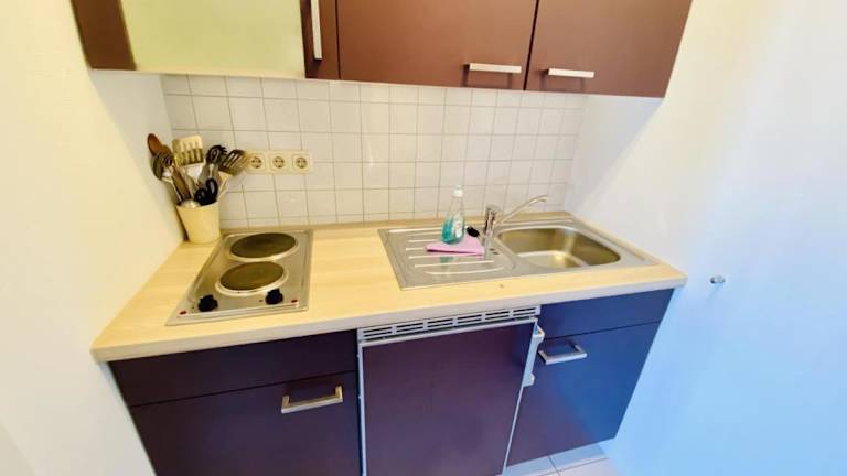 Die Ferienwohnung umfasst ein Schlafzimmer, eine Küchenzeile mit Kühlschrank und Herdplatte sowie Kabel-TV. WLAN ist ebenfalls in der Unterkunft verfügbar.