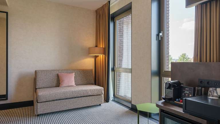 Im Monet Garden Hotel Amsterdam können Sie ein reichhaltiges Frühstück mit frisch gebackenen Waffeln genießen. An der Bar werden regionale Biere und niederländisches Gin Tonic serviert.