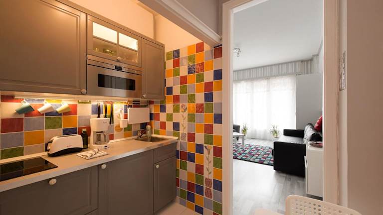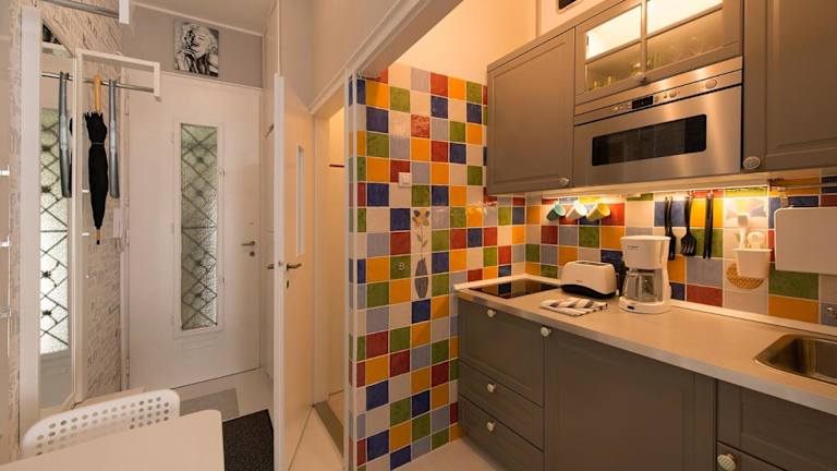 In diesem Apartment haben Sie die Möglichkeit, Ihre eigenen Mahlzeiten zuzubereiten, da es über eine voll ausgestattete Küche verfügt. Alternativ können Sie auch die Restaurants und Cafés in der Umgebung erkunden und die lokale Küche genießen.