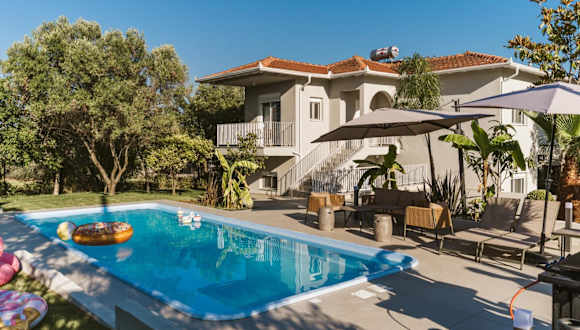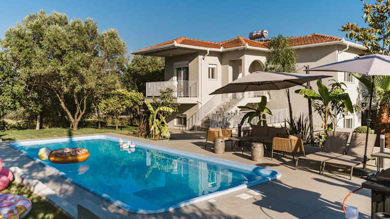 Mont Bleu - Luxury Pool Villa bietet einen saisonalen Außenpool und eine großzügige Terrasse. Zur Ausstattung gehören ein eigener Pool, ein Garten und ein Grillbereich. Zudem sind kostenloses WLAN und ein kostenloser Privatparkplatz verfügbar.