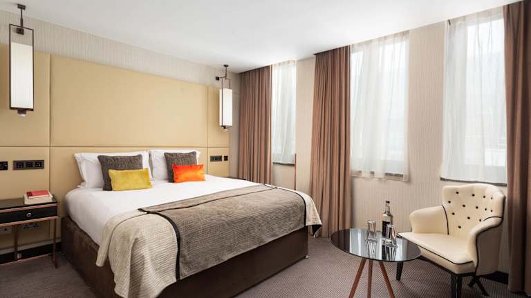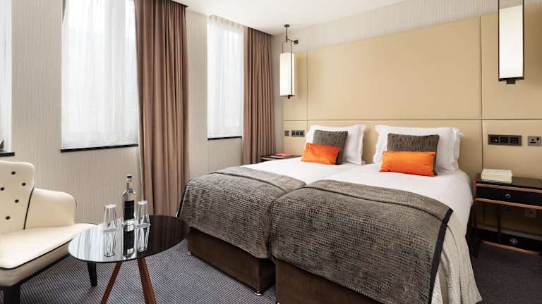 Das Hotel verfügt über zwei Bars, darunter eine Bar auf dem Dach mit einem spektakulären Ausblick über die Stadt. Hier können Sie einen Drink genießen und den Blick auf London genießen. Es gibt auch zwei Restaurants, darunter eine Brasserie mit Kaffeebereich, die eine Vielzahl von Speisen anbieten. Darüber hinaus steht Ihnen ein 24-Stunden-Zimmerservice zur Verfügung.