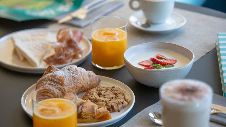 Die Unterkunft serviert ein Frühstück in Buffetform, das kontinentale und italienische Optionen umfasst. Ein Restaurant mit italienischer Küche ist ebenfalls vorhanden, und es werden auf Anfrage vegetarische, milchfreie und vegane Gerichte angeboten.