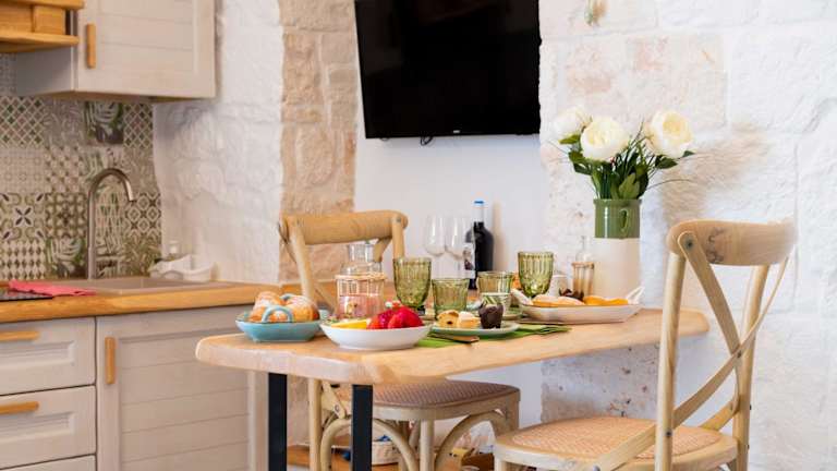 Die klimatisierten Zimmer im Montegrappa Dimore e Suite Alberobello sind modern eingerichtet und verfügen über eine voll ausgestattete Küchenzeile mit einem Essbereich. Jedes Zimmer ist mit einem Flachbild-TV und einem eigenen Badezimmer ausgestattet, das über eine Dusche, kostenfreie Pflegeprodukte und einen Haartrockner verfügt. Zur weiteren Ausstattung gehören ein Kühlschrank, ein Kochfeld, eine Kaffeemaschine und ein Wasserkocher. WLAN steht Ihnen in allen Bereichen der Unterkunft kostenfrei zur Verfügung.