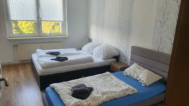 Die Ferienwohnung umfasst 2 Schlafzimmer, eine komplett ausgestattete Küche mit Kühlschrank und Ofen, einen Flachbild-TV sowie einen Sitzbereich. Das Badezimmer ist mit einer Badewanne ausgestattet. Handtücher und Bettwäsche werden bereitgestellt.