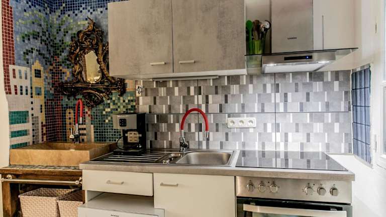 Die Ferienwohnung verfügt über 1 Schlafzimmer, eine voll ausgestattete Küchenzeile mit Kühlschrank und Mikrowelle sowie ein Badezimmer mit Dusche und Haartrockner. Handtücher und Bettwäsche sind ebenfalls vorhanden.