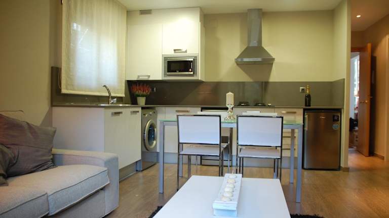 Die Suiten im Montseny Suites & Apartments sind stilvoll eingerichtet und verfügen über eine Küchenzeile, in der Sie Ihre eigenen Mahlzeiten zubereiten können. Der geräumige Wohnbereich bietet einen Kamin und einen Flachbild-TV für gemütliche Abende. Im Badezimmer finden Sie eine Regendusche und hochwertige Pflegeprodukte der Marke L'Occitane.