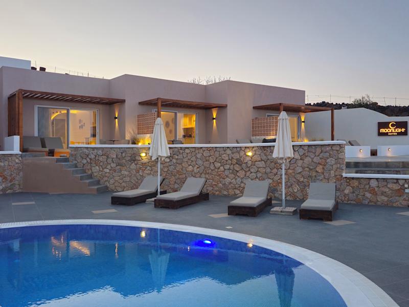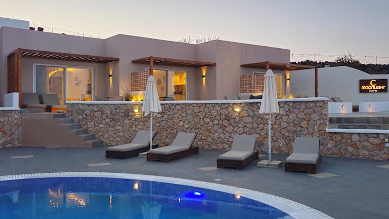 Die Moonlight Apartments verfügen über einen Pool mit Kinderbereich, in dem Sie sich an heißen Tagen erfrischen und entspannen können. Die Sonnenterrasse bietet einen herrlichen Blick auf die Ägäis und lädt zum Entspannen und Sonnenbaden ein. In der Umgebung gibt es auch zahlreiche Möglichkeiten für sportliche Aktivitäten wie Wandern und Wassersport.
