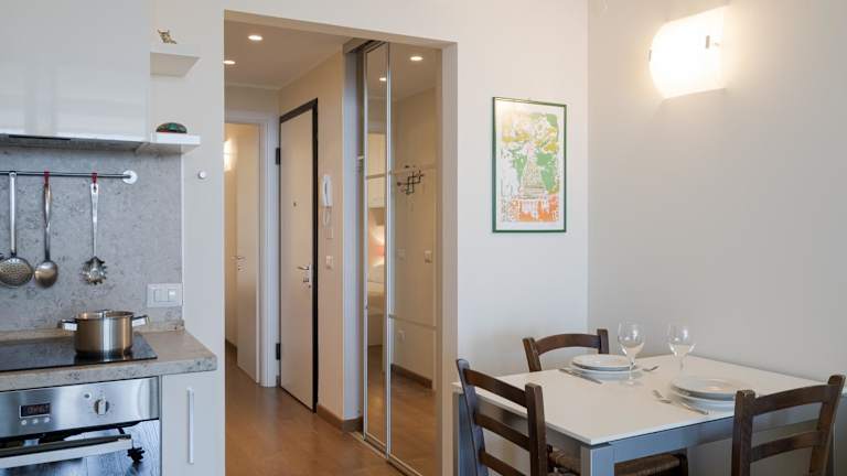 Die Ferienwohnung besteht aus einem separaten Schlafzimmer, einem Wohnzimmer, einer voll ausgestatteten Küche und einem Badezimmer. Zur Ausstattung gehört zudem ein Flachbild-TV.