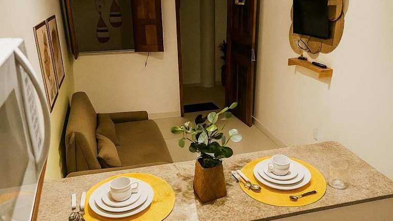 Morada da Lena - Praia do Forte bietet Übernachtungsmöglichkeiten mit kostenlosem WLAN in der gesamten Unterkunft. Die gesamte Unterkunft ist klimatisiert und enthält eine voll ausgestattete Küche mit Essbereich.