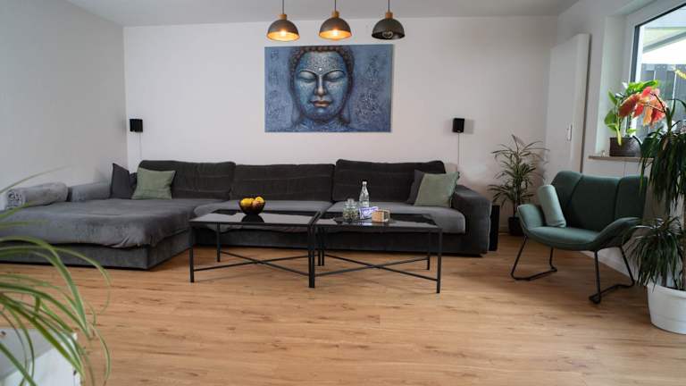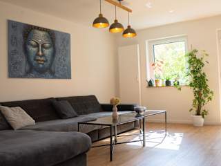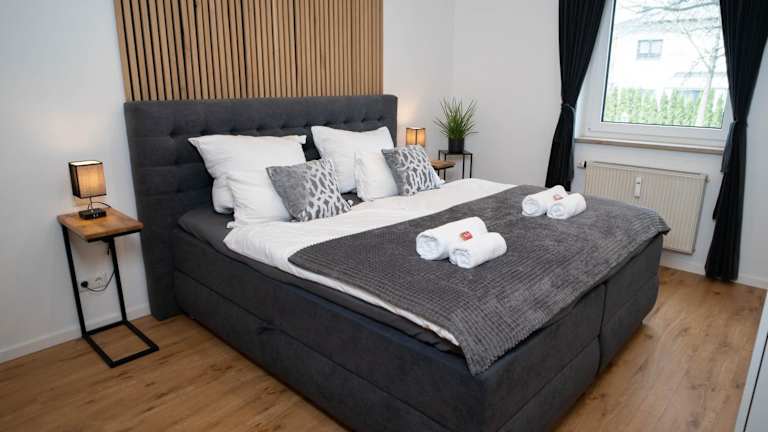 Die Ferienwohnung bietet Platz für 2 Schlafzimmer, ein Wohnzimmer, einen Essbereich und ein Badezimmer mit Dusche. Bettwäsche und Handtücher werden bereitgestellt. Die Zimmer sind schallisoliert und es stehen Nichtraucherzimmer zur Verfügung.