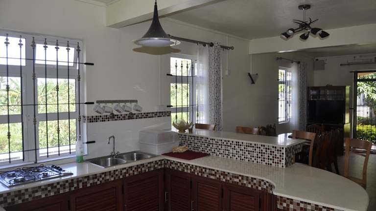 Die Moringi (Veer Residences) in Trou d'Eau Douce bieten komfortable Unterkünfte in einer Villa mit einem schönen Gartenblick. Nur wenige Schritte vom Strand entfernt, ist dies der ideale Ort für einen entspannten Urlaub. Die klimatisierte Villa verfügt über 2 Schlafzimmer, ein geräumiges Wohnzimmer und eine voll ausgestattete Küche. Sie können auch ein Auto mieten, um die Umgebung zu erkunden. In der Nähe finden Sie weitere Strände und den Golfplatz Le Touessrok. Der Flughafentransfer kann gegen Aufpreis arrangiert werden.