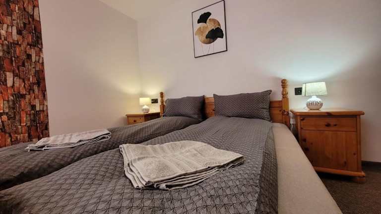 Die Ferienwohnung umfasst 2 Schlafzimmer und ein Wohnzimmer, das mit einem Flachbild-TV mit Satellitenkanälen ausgestattet ist. Zudem steht eine voll ausgestattete Küche mit Kühlschrank und Geschirrspüler sowie ein Badezimmer mit Badewanne oder Dusche zur Verfügung. Handtücher und Bettwäsche werden bereitgestellt.