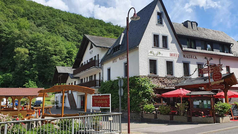 Das Moselhotel Waldeck liegt in der grünen Umgebung von Burgen an der Mosel in Rheinland-Pfalz. Die ruhige Lage und die Nähe zur Mosel machen es zum idealen Ausgangspunkt für Erkundungen und Aktivitäten in der Umgebung.