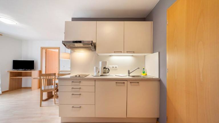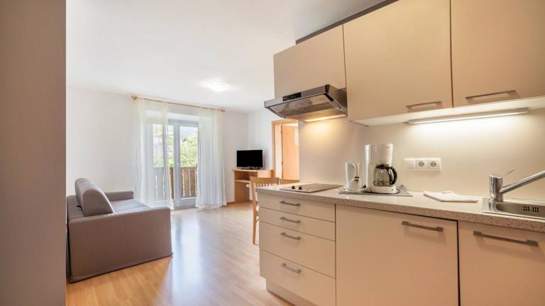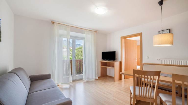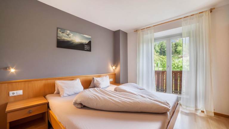 Die Ferienwohnung umfasst 2 Schlafzimmer, ein Wohnzimmer mit TV, eine gut ausgestattete Küche mit Kühlschrank und Herdplatte sowie ein Badezimmer mit Dusche. Ein Balkon mit Bergblick ist ebenfalls vorhanden. Handtücher und Bettwäsche werden bereitgestellt.