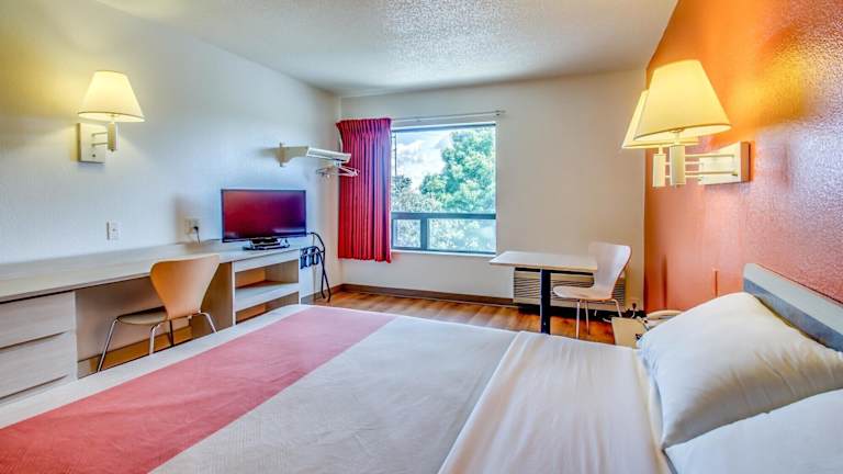 Die Zimmer im Motel 6-Amherst, NY - Buffalo sind hell und komfortabel eingerichtet. Jedes Zimmer verfügt über eine Sitzecke und einen Schreibtisch, was es den Gästen ermöglicht, sich zu entspannen und zu arbeiten. Das Zimmer ist zudem mit einem eigenen Bad ausgestattet, das für Privatsphäre und Komfort sorgt. Zusätzlich bietet das Motel kostenfreies WLAN und Kabel-TV, damit die Gäste mit der Welt in Verbindung bleiben können.
