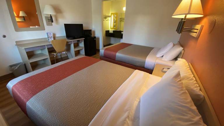 Die Zimmer im Motel 6 Flagstaff - West - Woodland Village sind farbenfroh gestaltet und mit hellen Holzmöbeln eingerichtet. Jedes Zimmer verfügt über ein eigenes Bad und ist klimatisiert. Ein Kabel-TV mit Spielfilmkanälen trägt zum Komfort der Gäste bei.