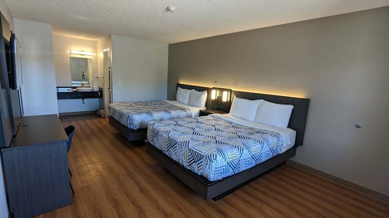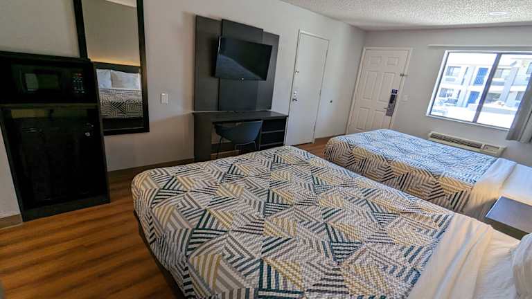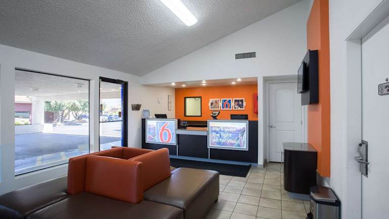 Das Motel 6-Kingman, AZ - Route 66 West in Kingman bietet seinen Gästen eine komfortable Unterkunft mit einem Restaurant und kostenfreiem WLAN. Die Zimmer sind hell eingerichtet und verfügen über einen Sitzbereich sowie Kabel-TV. Entspannen Sie am Außenpool oder nutzen Sie den Waschsalon in der Unterkunft. Das hoteleigene Restaurant Calico's serviert amerikanische Küche und ist sowohl zum Frühstück als auch zum Abendessen geöffnet. Die Lage des Motels ermöglicht es den Gästen, das Bonelli House und das Mohave Community College in kurzer Zeit zu erreichen.