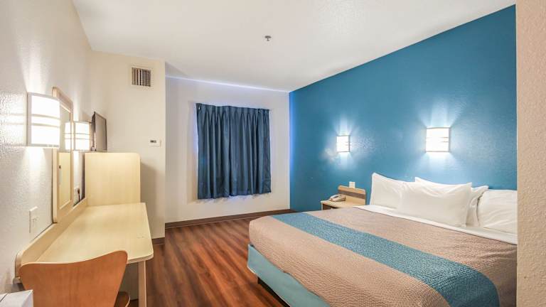 Die Zimmer im Motel 6 New Braunfels bieten Ihnen eine komfortable Unterkunft mit erweitertem Kabel-TV. Jedes Zimmer verfügt über eine Mikrowelle und einen Kühlschrank, damit Sie Ihre eigenen Mahlzeiten zubereiten können. Ein Schreibtisch und bunte Bettwäsche sorgen für eine angenehme Atmosphäre.