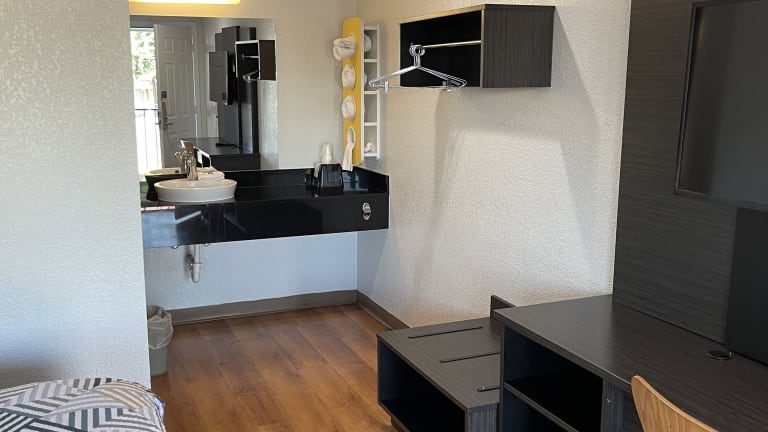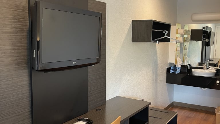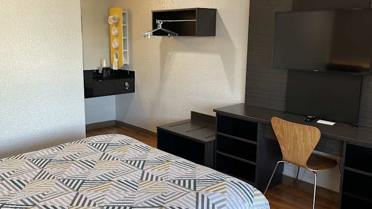 Es ist buchstäblich ein billiges Motel. Keine angenehme Atmosphäre. Mein Eindruck von der Gegend ist: abgesandelt und schäbig. Das Zimmer ist Motel 6 Standard. Die Klimaanlage war bei mir schon ziemlich überlastet und somit sehr laut und muffig.