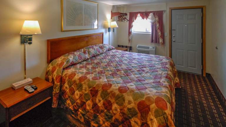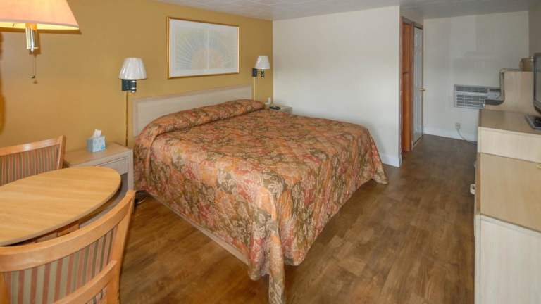 Die Zimmer im Budget Inn Watkins Glen bieten eine komfortable Unterkunft mit grundlegenden Annehmlichkeiten. Jedes Zimmer verfügt über einen Kühlschrank und Kabel-TV, damit Sie sich wie zu Hause fühlen können. Die Zimmer sind mit Holzmöbeln eingerichtet und in hellen Farben gehalten, um eine angenehme und einladende Atmosphäre zu schaffen. Jedes Zimmer verfügt über ein eigenes Bad für Ihre Bequemlichkeit.