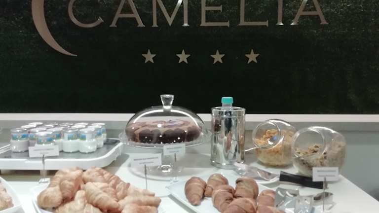 Beginnen Sie Ihren Tag im Hotel Camelia mit einem köstlichen Frühstücksbuffet, das süße und herzhafte Speisen bietet.
