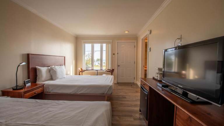 Die Zimmer sind mit einem Flachbild-TV, kostenfreiem WLAN, einem Kühlschrank und Kaffeezubehör ausgestattet. Sie verfügen über weiße, geblümte Bettwäsche und bieten einen Blick auf die Bucht von Gaspé. Die Chalets besitzen eine Terrasse sowie Grillmöglichkeiten.