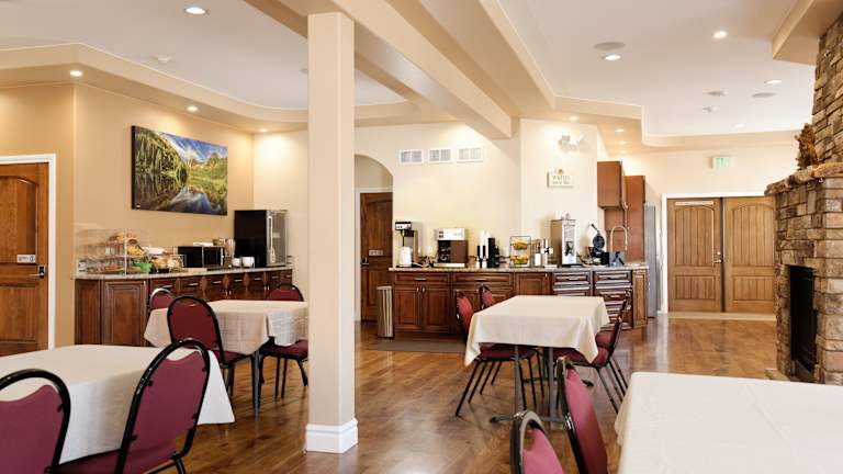 Das Glenwood Springs Inn bietet ein tägliches kontinentales Frühstück, das eine Auswahl an Gebäck, Bagels, Saft und Kaffee umfasst. Beginnen Sie den Tag gestärkt und genießen Sie die leckeren Speisen, bevor Sie sich auf Erkundungstour begeben. Das Motel verfügt auch über ein Restaurant, das täglich bayerisch inspirierte amerikanische Küche serviert. Freuen Sie sich auf Gerichte wie pochierte Eier auf Röstbrot, Pfannkuchen und Palatschinken.