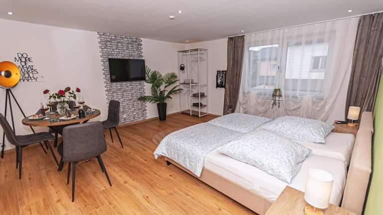 Das Kalos Haus in Haiger bietet komfortable Unterkünfte mit kostenfreiem WLAN und moderner Ausstattung. Die Lage des Hotels ermöglicht es den Gästen, die Stadthallen von Wetzlar und den Berg Fuchskaute bequem zu erreichen. Die Apartments sind mit einer voll ausgestatteten Küche ausgestattet und bieten einen gemütlichen Sitzbereich sowie einen Essbereich. Handtücher und Bettwäsche können gegen Aufpreis zur Verfügung gestellt werden. Der Flughafen Köln/Bonn ist etwa 115 km entfernt und ein kostenpflichtiger Flughafentransfer wird angeboten.