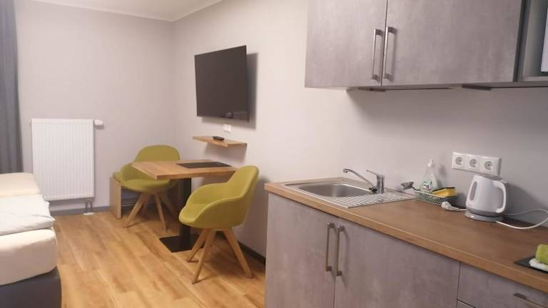 Die Zimmer sind ausgestattet mit einem Sitzbereich, einer Waschmaschine und einer voll ausgestatteten Küche, die einen Kühlschrank umfasst. Jedes Zimmer verfügt über ein eigenes Badezimmer mit kostenlosen Pflegeprodukten und einem Haartrockner. Einige Wohneinheiten bieten zusätzlich eine Terrasse und/oder einen Balkon.