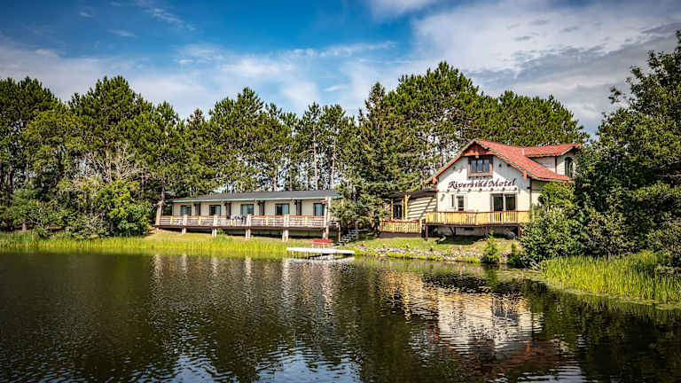 Das Riverside Motel befindet sich in Hayward, Wisconsin, und liegt malerisch am Fluss Namekagon. Die Lage bietet eine ruhige und entspannte Atmosphäre, ideal zum Entspannen und Erholen. In der Umgebung gibt es verschiedene Aktivitäten und Attraktionen, darunter der Hayward Lake Beach, die National Fresh Water Fishing Hall of Fame und die Scheer's Lumberjack Show. Naturfreunde können auch den Wilderness Walk Zoo besuchen, der nur wenige Kilometer entfernt liegt.