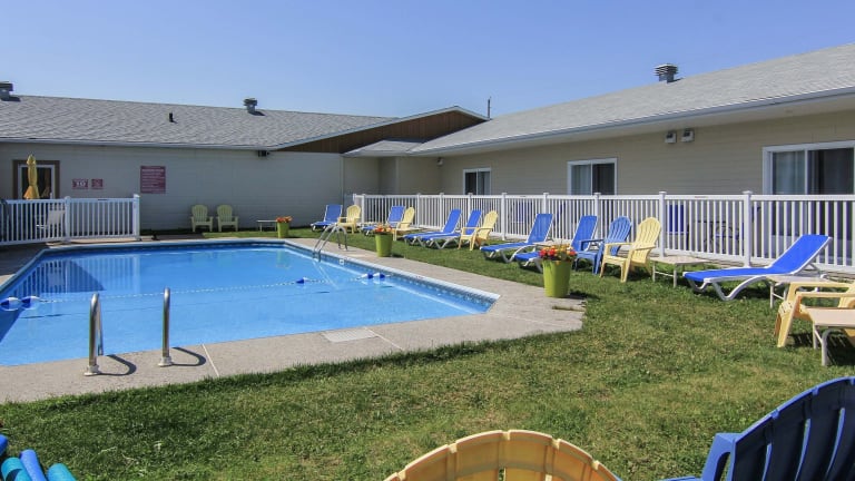 Der saisonale Außenpool des Motels bietet eine erfrischende Möglichkeit, sich zu entspannen und die Sonne zu genießen. Die Terrasse lädt ebenfalls zum Entspannen im Freien ein.