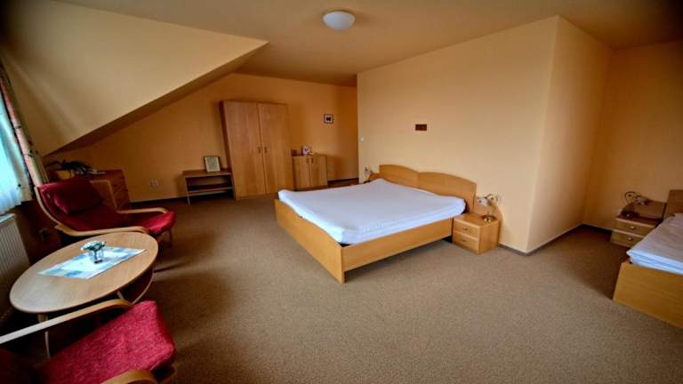 Motel an einer Hauptverkehrsstrasse gelegen. Zimmer im ersten Stock mit Dachschräge, d.h. Kopf einziehen! Auf dem Zimmer gab es einen kleinen TV, nur Sender in Czech. Einen Wasserkocher und einen Teebeutel. Bad mit Dusche, aber kein Fön. Im Zimmer gab es kein Wlan, aber dafür kostenfreies Lan. Kein safe, keine Kofferablage. Das Bett war sehr schmal un das Kissen zu klein. Essen im Restaurant war gut, und Ambiente ok. Zum Frühstück gab es vor acht nur eine kalte Platte, nach acht hatte man menuwahl von Karte. Im…
