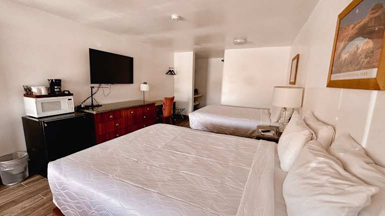 Das Whispering Sands Motel in Hanksville bietet Ihnen einen angenehmen Aufenthalt inmitten der Natur. Genießen Sie die entspannte Atmosphäre und die vielen Annehmlichkeiten, wie kostenloses WLAN, einen Souvenirladen und einen Picknickbereich. Das Motel verfügt über drei Restaurants und ein Café, in denen Sie köstliche Speisen genießen können. Die Zimmer sind komfortabel und individuell gestaltet und verfügen über Annehmlichkeiten wie einen Kühlschrank und einen Flachbildfernseher. Die Mitarbeiter sind freundlich und hilfsbereit und stehen Ihnen bei Fragen gerne zur Verfügung.