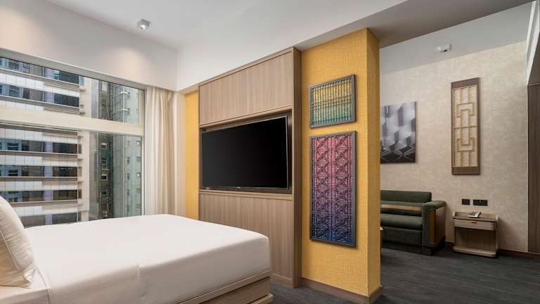 Das Cityhotel bietet 274 Nichtraucherzimmer auf 38 Etagen. Die Zimmer sind komfortabel eingerichtet und verfügen über Annehmlichkeiten wie Klimaanlage, Safe, Minibar und WLAN. Einige Zimmer sind rollstuhlgerecht und verfügen über barrierefreie Badezimmer.