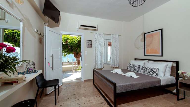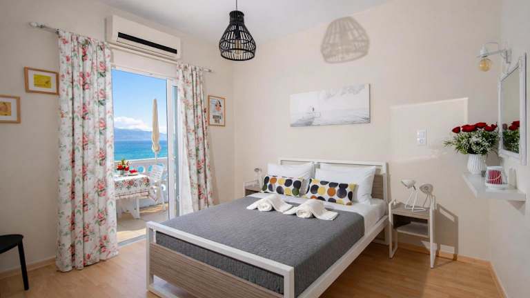 Moukas Seaside Apartments Romantico bietet Übernachtungsmöglichkeiten mit kostenlosem WLAN und Klimaanlage. Die Gäste können zudem den Garten der Unterkunft nutzen. Jede Wohneinheit besticht durch eine eigene Terrasse mit Meerblick, was zur Erholung der Gäste beiträgt.