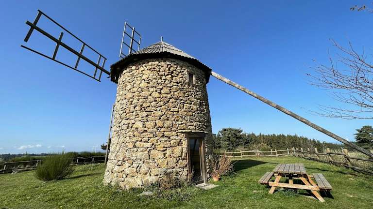 Moulin à vent restauré avec vue sur la campagne - FR-1-582-221 ist ein Ferienhaus, das einen Blick auf die umliegende Landschaft bietet und mit einem Garten ausgestattet ist.