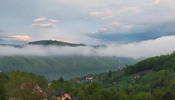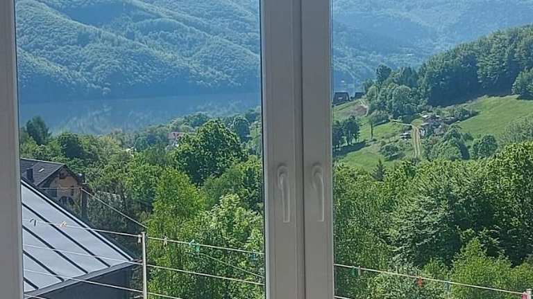 Die Unterkunft befindet sich in Miedzybrodzie und bietet einen Blick auf die umliegenden Berge und den See. Sie liegt etwa 30 km von dem Sport- und Freizeitzentrum Oświęcim und 32 km von Auschwitz entfernt. Die Umgebung bietet verschiedene Freizeitmöglichkeiten, darunter den Freizeitpark Energylandia in einer Entfernung von 36 km und das Conference Centre 'Kocierz' in 13 km Entfernung. Der nächste Flughafen, Johannes Paul II. Krakau-Balice, ist 72 km entfernt.