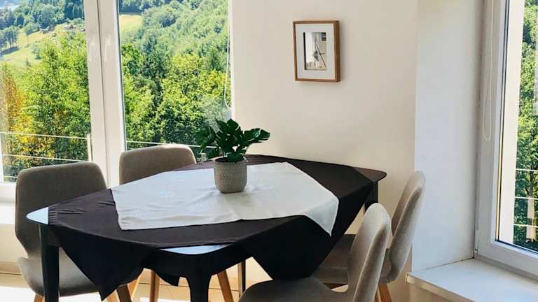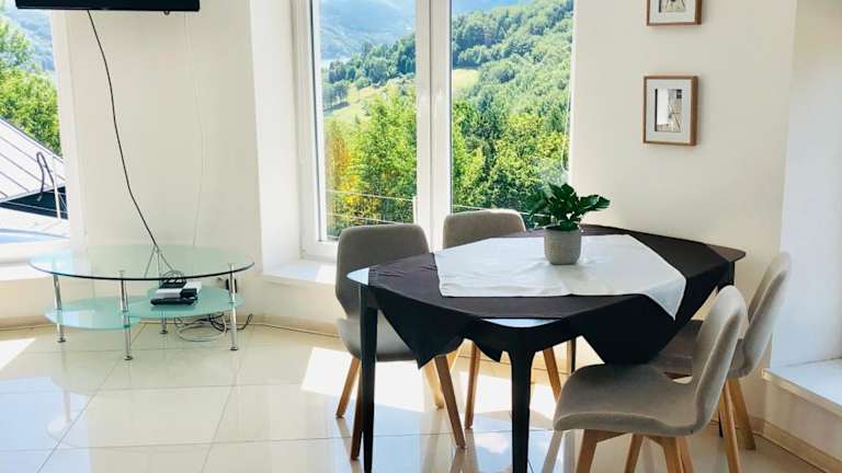 Die Unterkunft Mountain and Lake Views beautiful Miedzybrodzie ist eine Ferienwohnung, die sich durch ihre schöne Aussicht auf die Berge und den See auszeichnet. Sie bietet einen Balkon sowie eine Terrasse zur Entspannung im Freien. Die Ferienwohnung verfügt über Klimaanlage und kostenlosen Privatparkplatz für die Gäste.