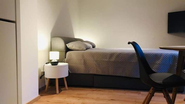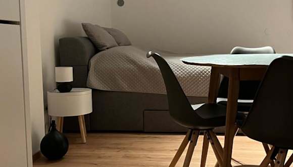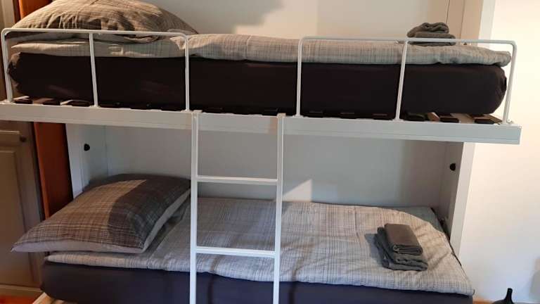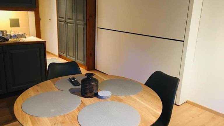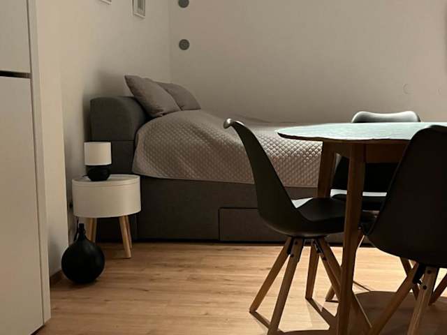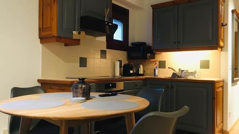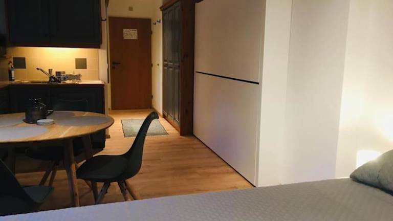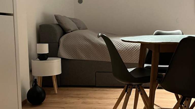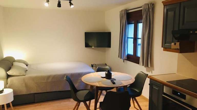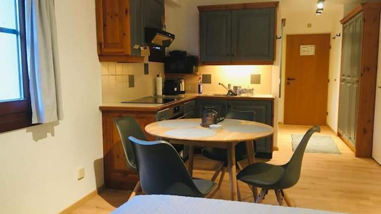 Die Ferienwohnung umfasst 1 Schlafzimmer, eine voll ausgestattete Küchenzeile mit Kühlschrank und Ofen sowie ein Badezimmer mit Dusche und Haartrockner.