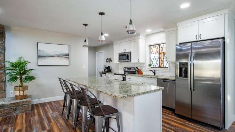 Die Unterkunft verfügt über eine gut ausgestattete Küche, die mit einem Kühlschrank, Geschirrspüler und Ofen ausgestattet ist. Eine spezifische Verpflegung oder Restaurantoptionen sind nicht angegeben.